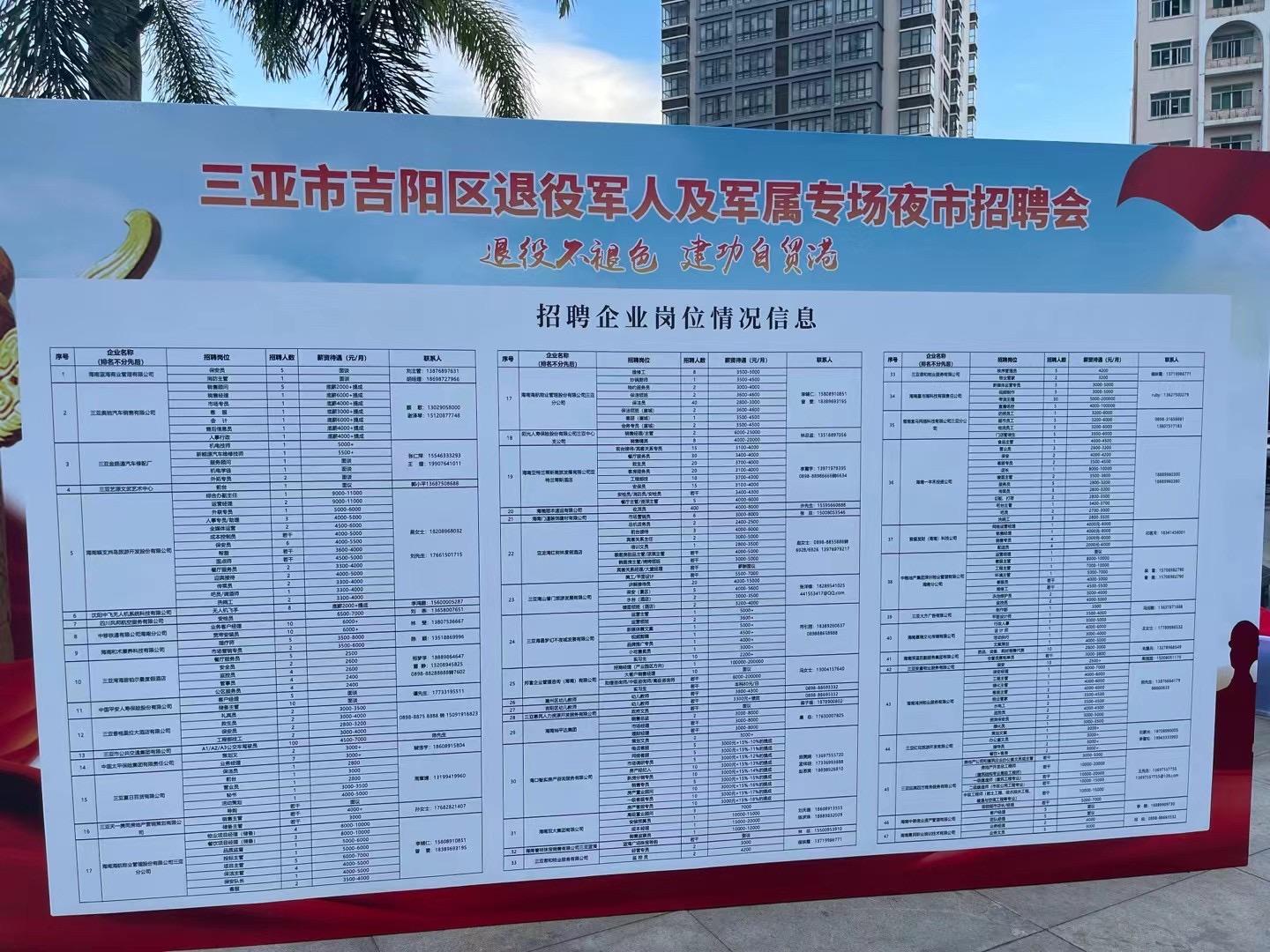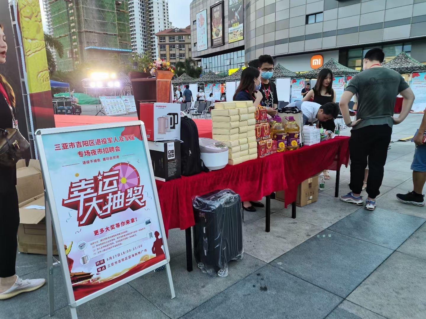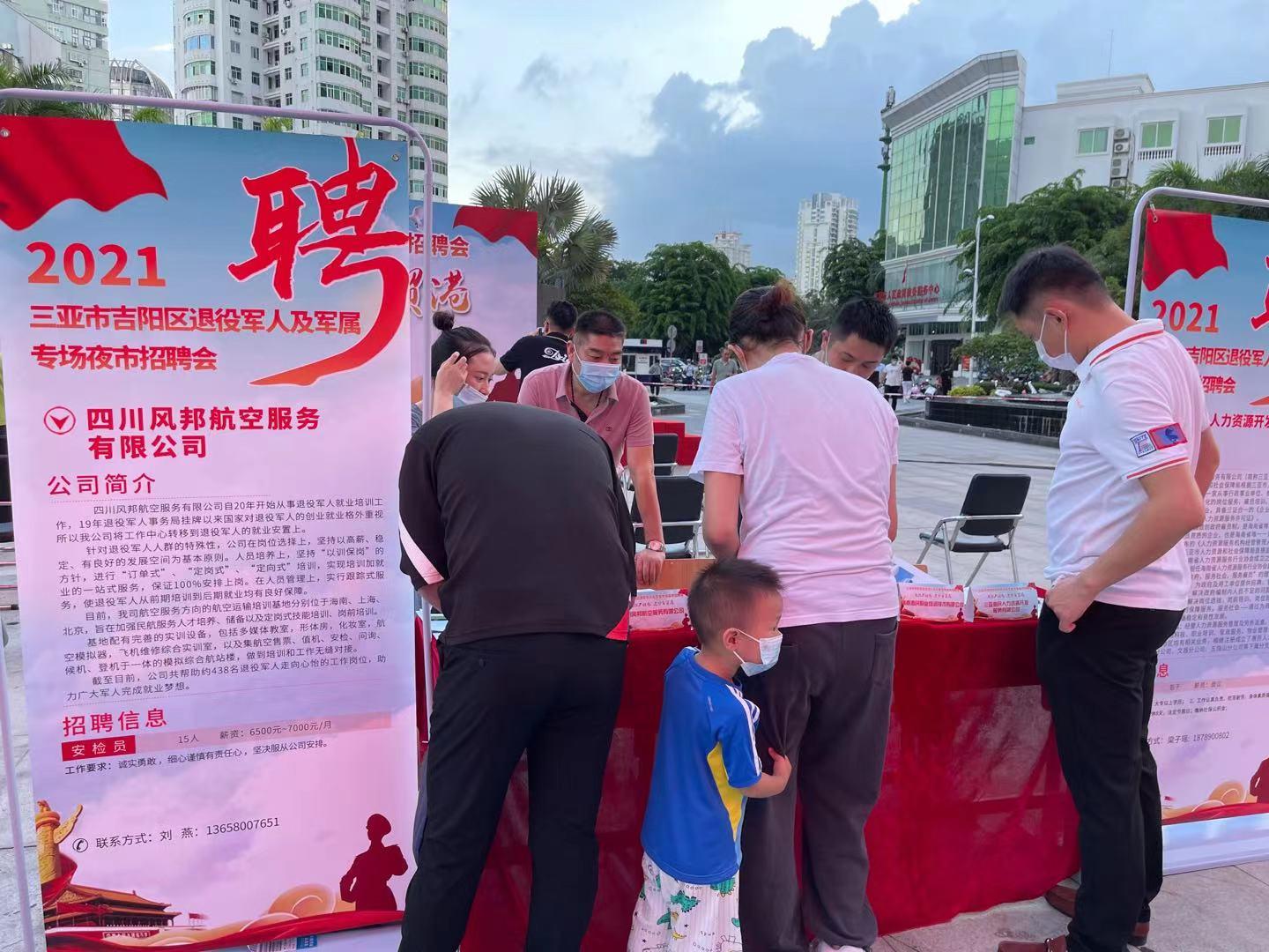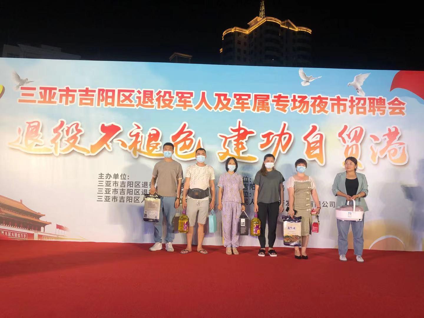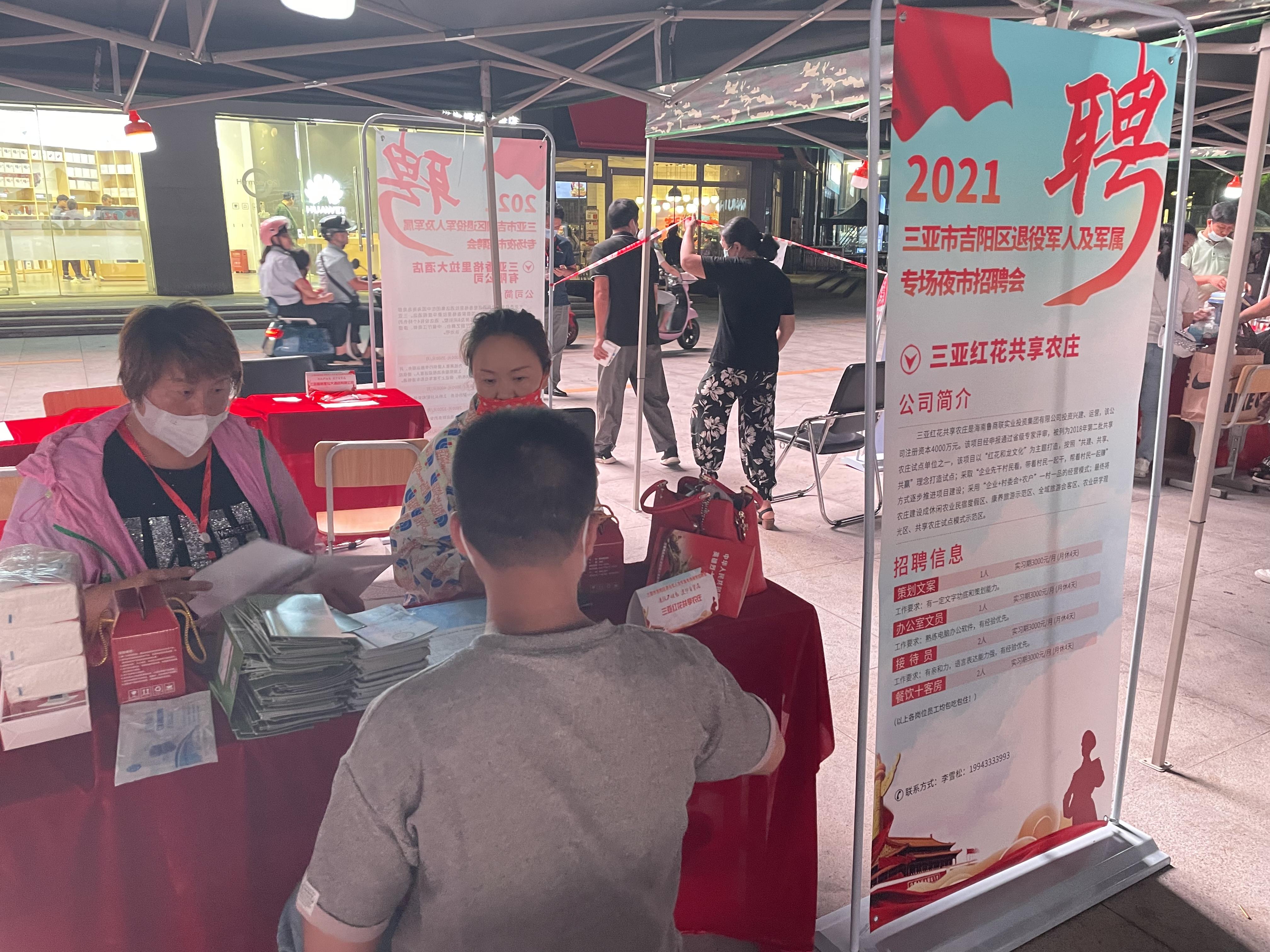 9月27日,由吉陽區(qū)退役軍人事務(wù)局、吉陽區(qū)退役軍人服務(wù)中心、吉陽區(qū)人力資源和社會保障局主辦,吉陽區(qū)民政局協(xié)辦,三亞惠民人力資源開發(fā)服務(wù)有限公司(惠民人力資源)承辦的三亞市吉陽區(qū)2021年退役軍人及家屬就業(yè)專場夜市招聘會在藍海購物廣場舉行。