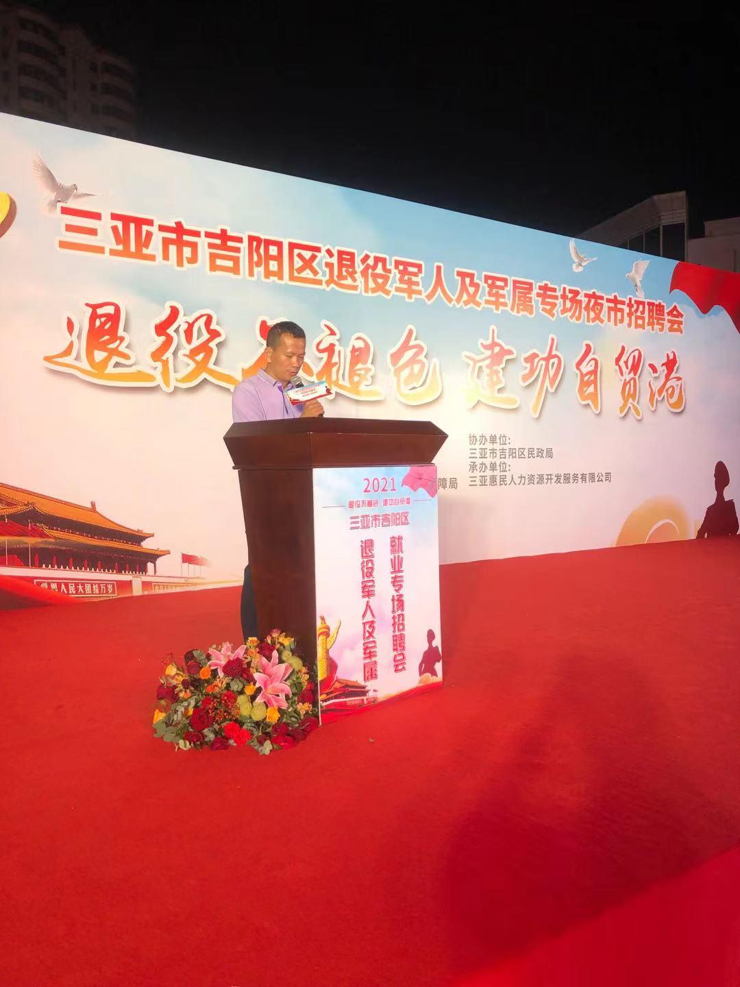 吉陽區(qū)退役軍人事務(wù)局邢忠副局長為招聘會致辭。